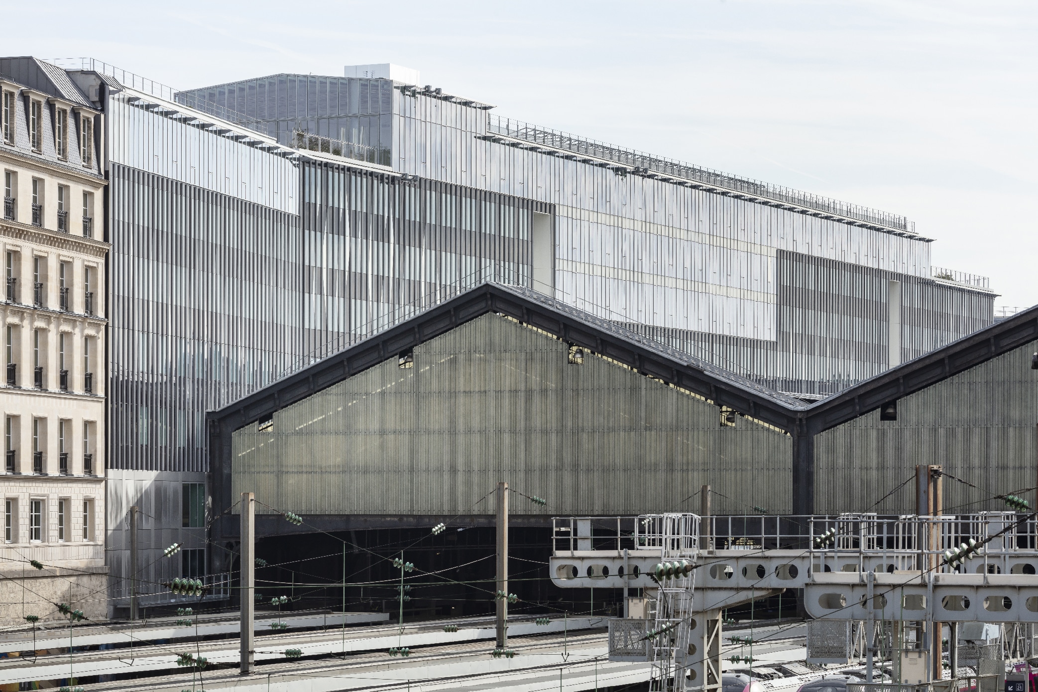 La façade côté gare évoque le rythme et les reflets de la verrière historique dont elle semble être la continuité contemporaine, dans une volonté de prolonger le patrimoine architectural, industriel et ferroviaire de cet ouvrage emblématique.