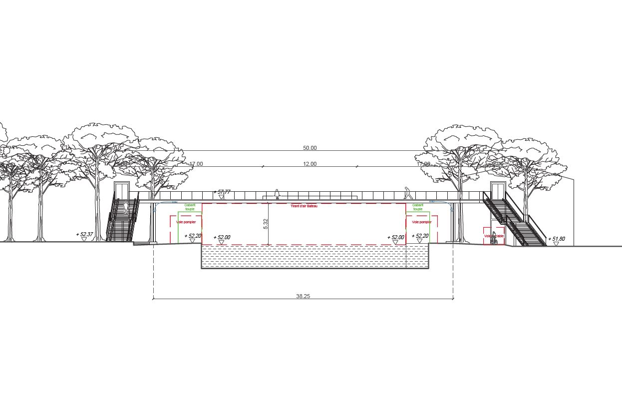 L’attention sera attirée sur la haute qualité architecturale de l’ouvrage et sur la qualité des finitions. La portée permettra d’enjamber le canal et les voies pompiers de manière à respecter les différents gabarits imposés par les Canaux de Paris.