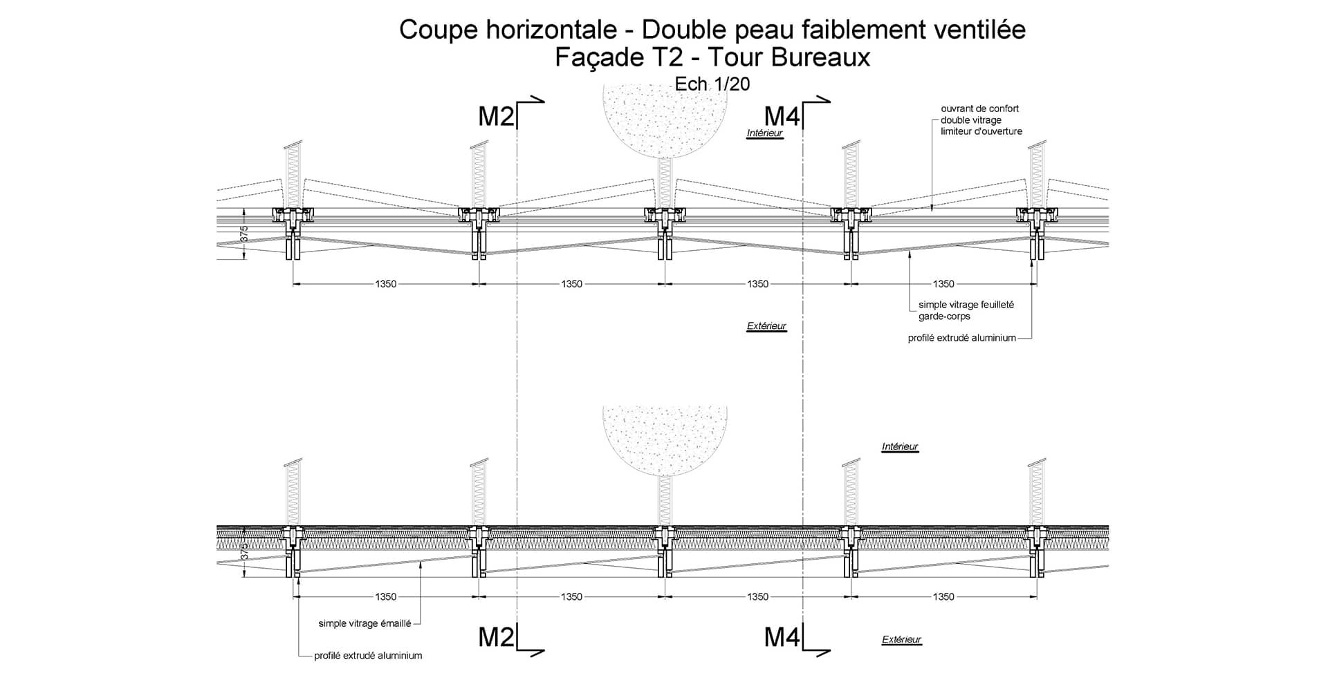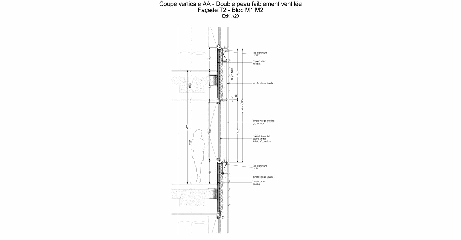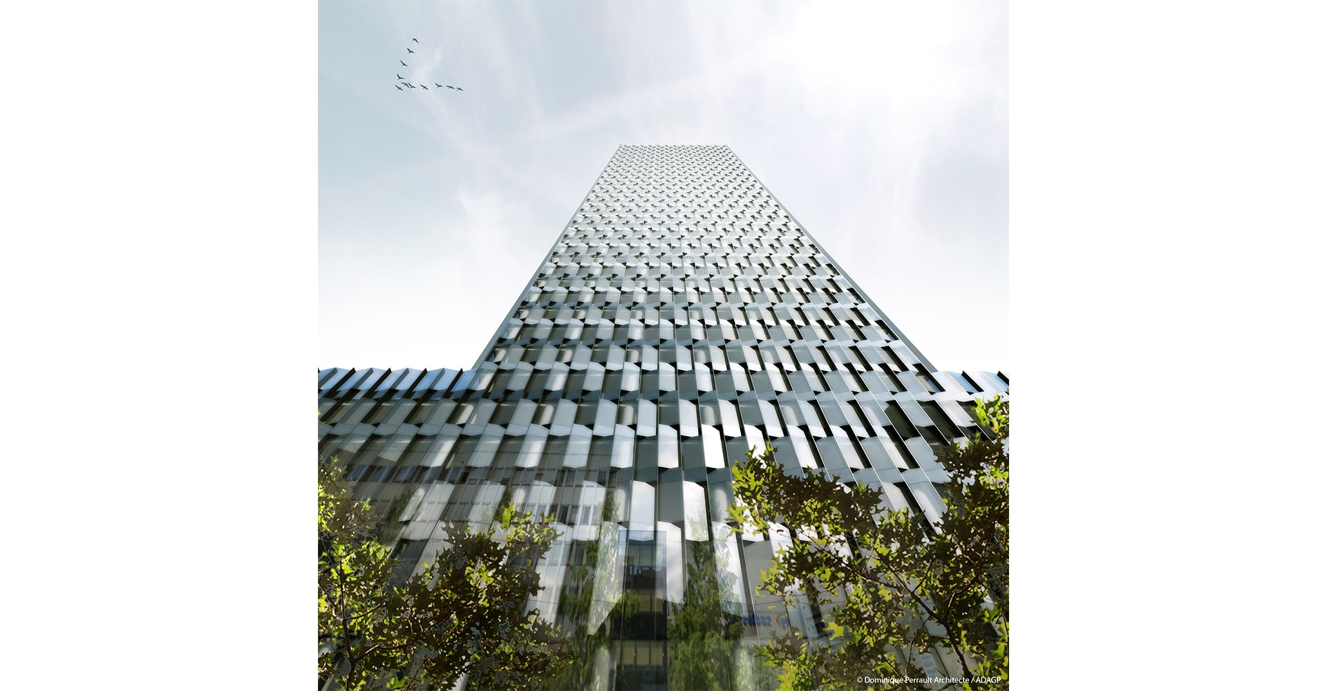 Sa façade contemporaine, avec une trame régulière vitrée, est plissée de manière à créer une profondeur et un relief en cohérence avec les bâtiments existants. La lumière s’y reflètera, donnant un caractère kaléïdoscopique au projet. Les tons bleus ou noirs, évoquant la pierre obsidienne, sont un clin d’œil à la région, ses montagnes et ses volcans. Cette tour constituera le nouveau point d’entrée de la gare et transformera la skyline lyonnaise pour devenir un symbole du quartier.