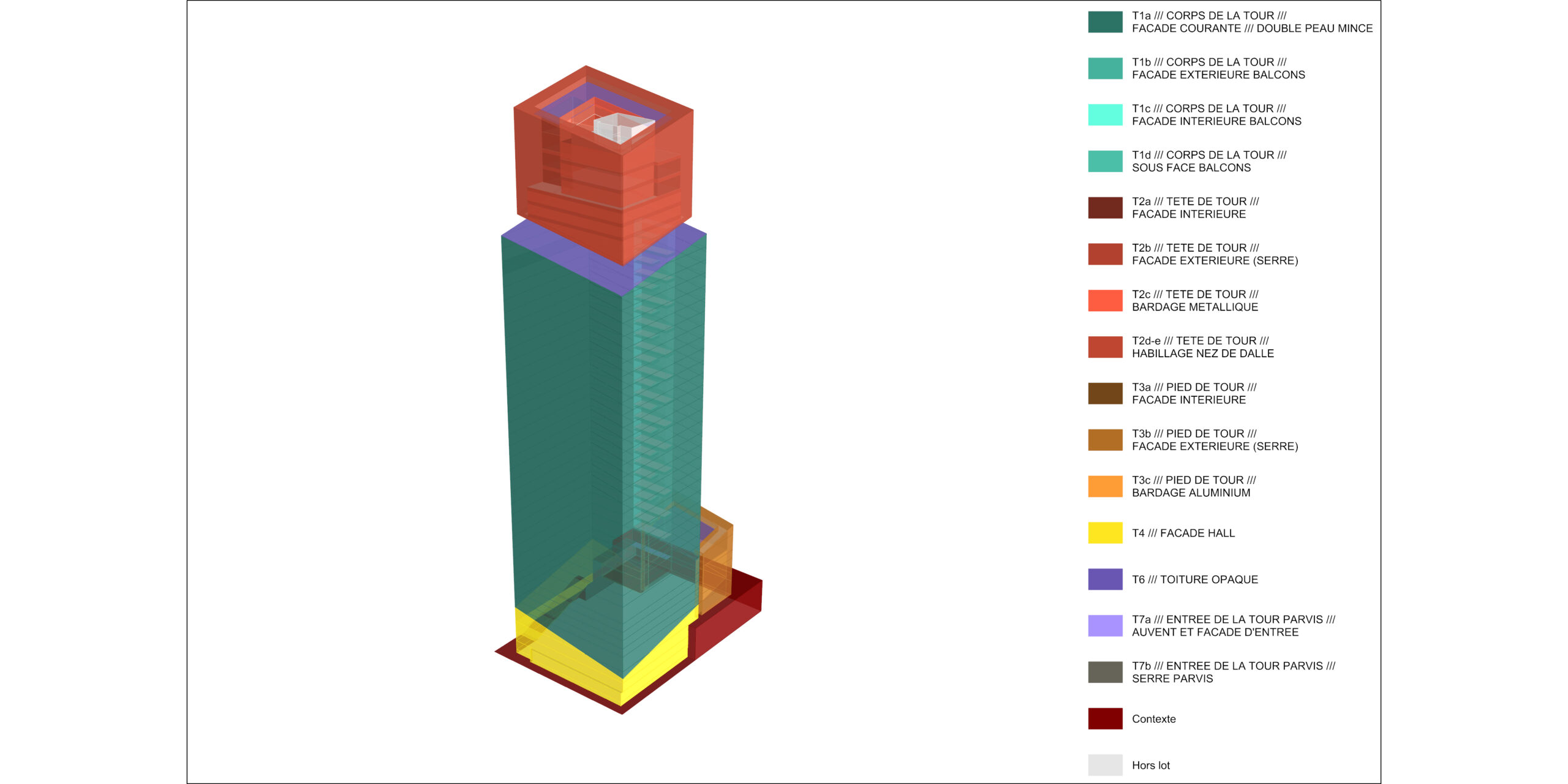 La tour est construite dans l’espace résiduel entre le boulevard Circulaire et le bâtiment Iris. Ce dernier, datant de 1983, a été détruit pour permettre l’aménagement d’un parvis plus vaste qu’aujourd’hui, côté La Défense ; en revanche, le parking Iris implanté en infrastructure de l’immeuble à démolir a été conservé et maintenu en exploitation durant tout le chantier de la tour Saint Gobain.