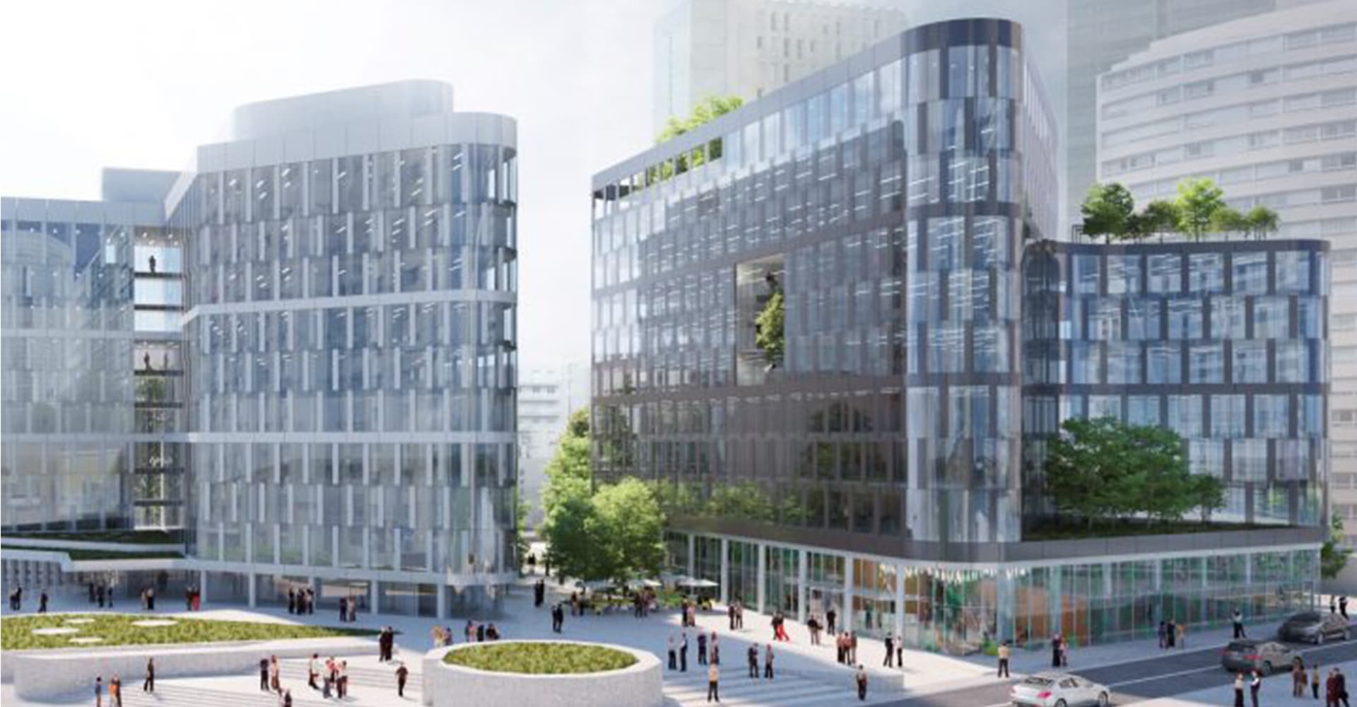Comme pour le projet Ampère, c’est le cabinet d’architecte Ateliers 2/3/4/ qui est à la manœuvre de cette lourde restructuration qui prévoit notamment d’agrandir l’ouvrage. La nouvelle façade de Watt, reprend la même allure qu’Ampère avec cependant une teinte plus grise.